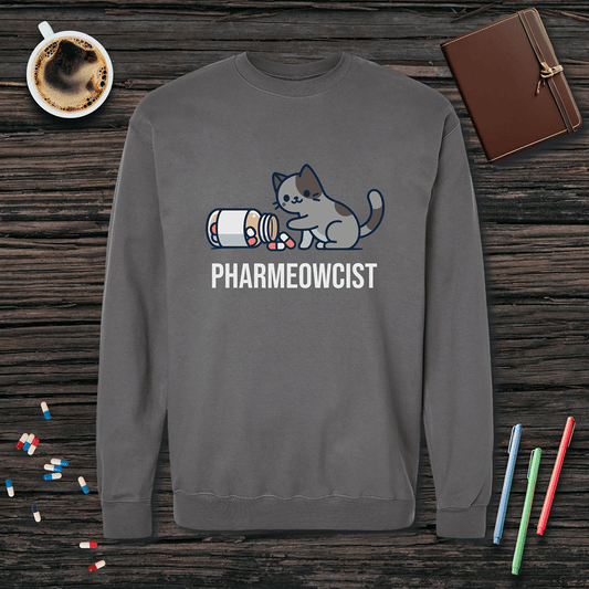 Pharmeowcist - Gray Cat Fleece Crewneck Sweatshirt