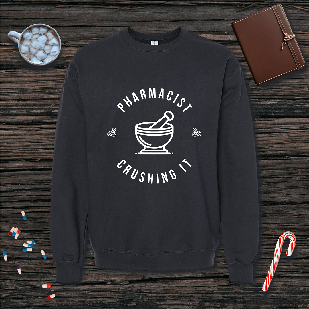 Crushing it - Pharmacist with Mortar Pestle Fleece Crewneck Sweatshirt