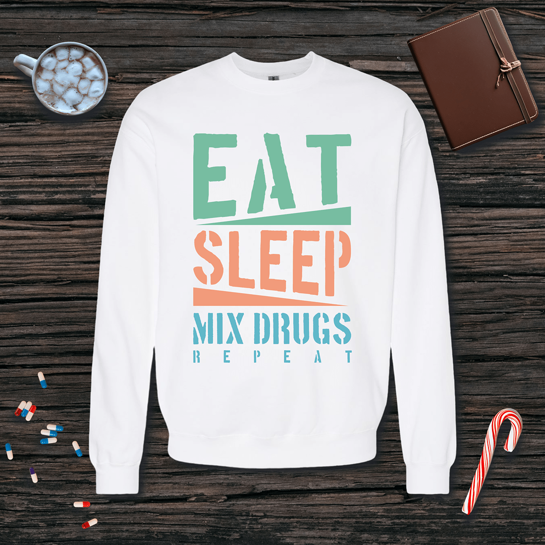 Eat Sleep Mix Drugs Repeat Fleece Crewneck Sweatshirt